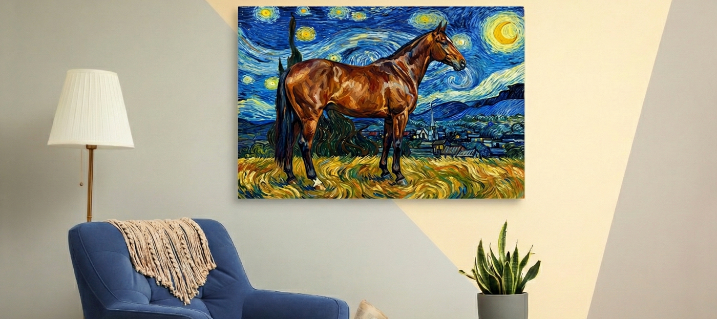 Turn your horse or horse & rider photo into a beautiful work of art in one of four paint styles